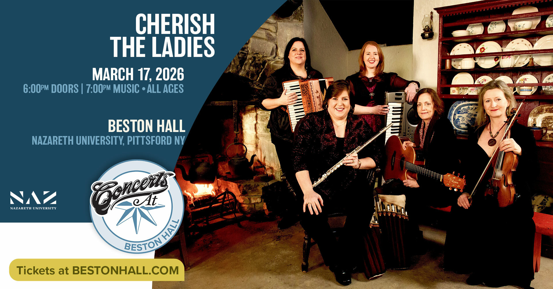 They will be performing on Saint Patrick’s Day, Tuesday, March 17 at 7:00 pm, at Beston Hall at Nazareth University in Pittsford. The show will feature Cherish the Ladies and professional touring Irish dancers. Guests will also enjoy young dancers from Dunleavy Irish Dance and a pre-concert show by East Rochester High School’s Róisín Dubh band.